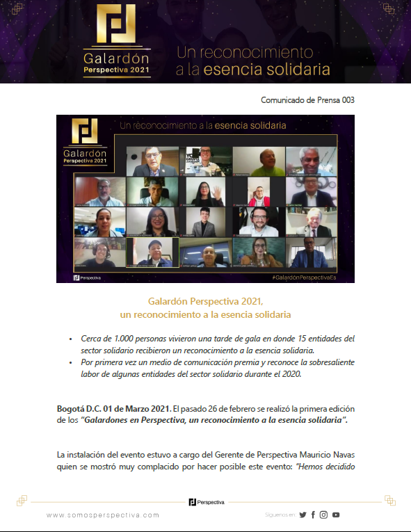 La instalación del evento estuvo a cargo del Gerente de Perspectiva Mauricio Navas quien se mostró muy complacido por hacer posible este evento: “Hemos decidido crear un espacio para exaltar la gestión de las entidades del sector, su liderazgo, bienestar de sus asociados, trasformación tecnológica, resultados financieros, innovación y su compromiso con el medio ambiente”.
