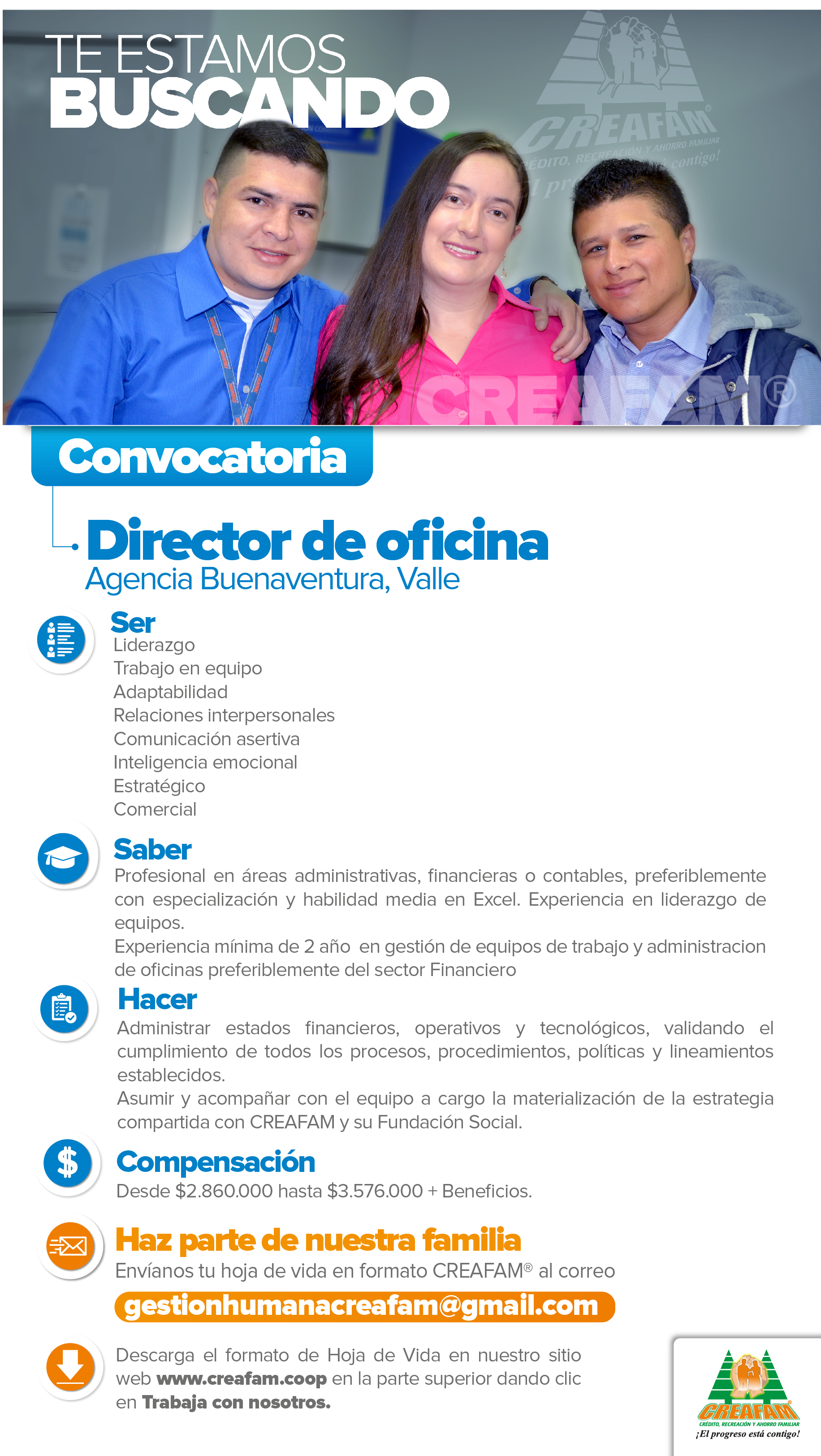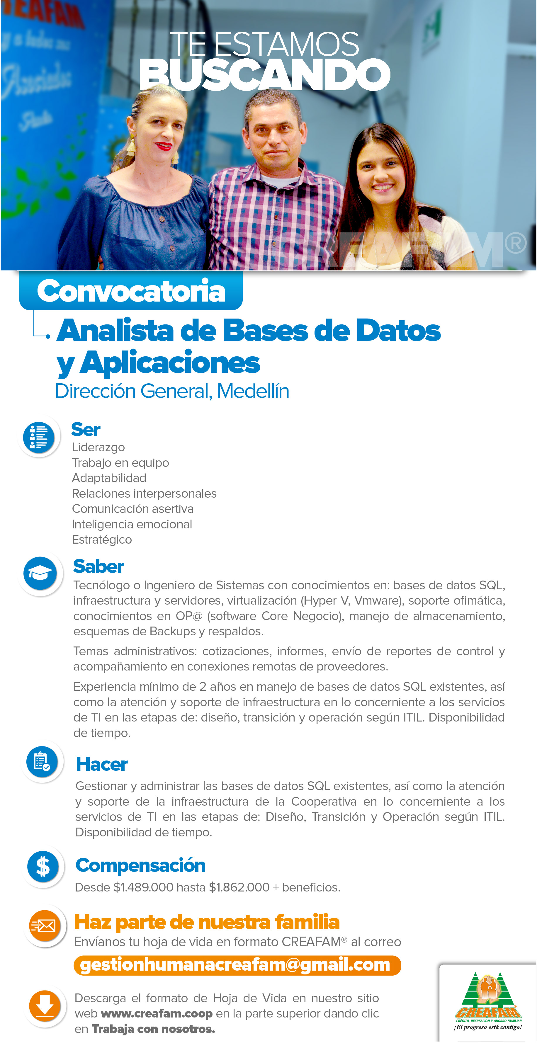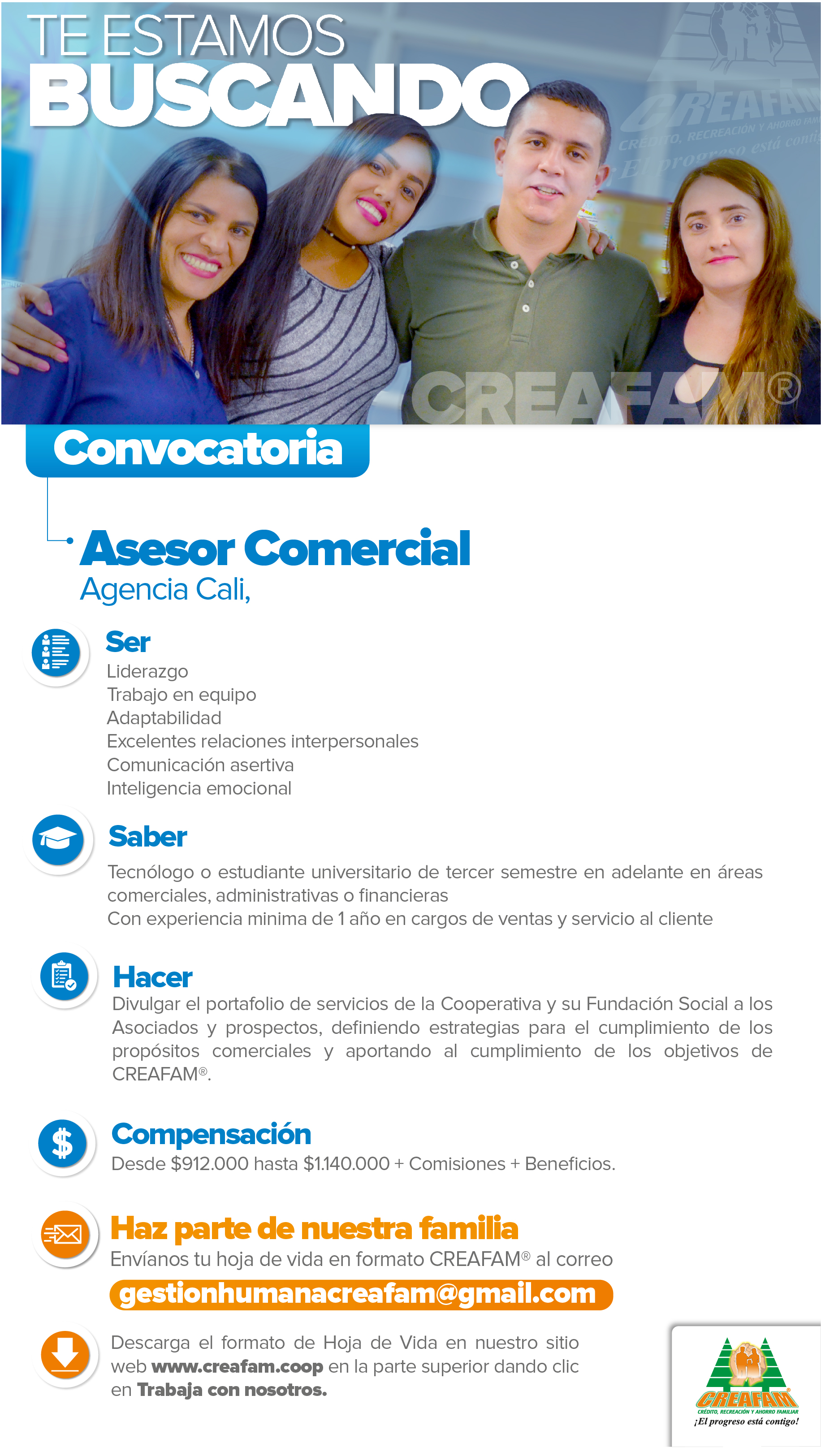 Ofertas laborales Cooperativa CREAFAM